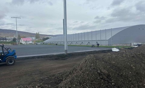 Byrjað að leggja gervigrasið á Ásnum