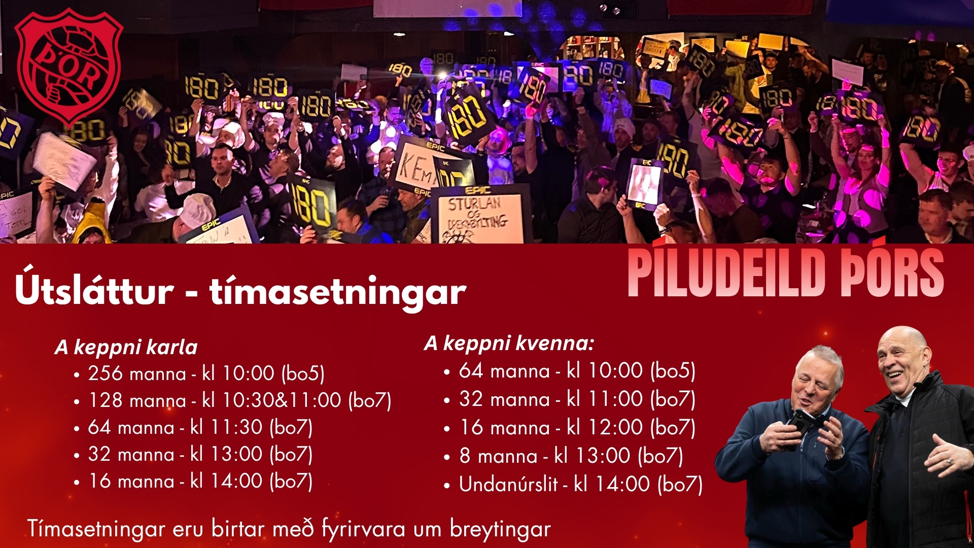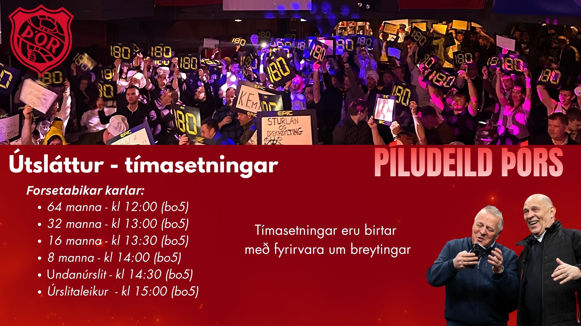 Í kvöld ráðast úrslitin á stóra sviðinu í Sjallanum þegar 8 manna úrslita karla hefjast kl 19:00. Í framhaldi verða undanúrslit karla og úrslitaleikur karla og kvenna. Nokkrir miðar eru eftir í standandi hólf og hvetjum við þá sem vilja tryggja sér miða að fara á www.tix.is