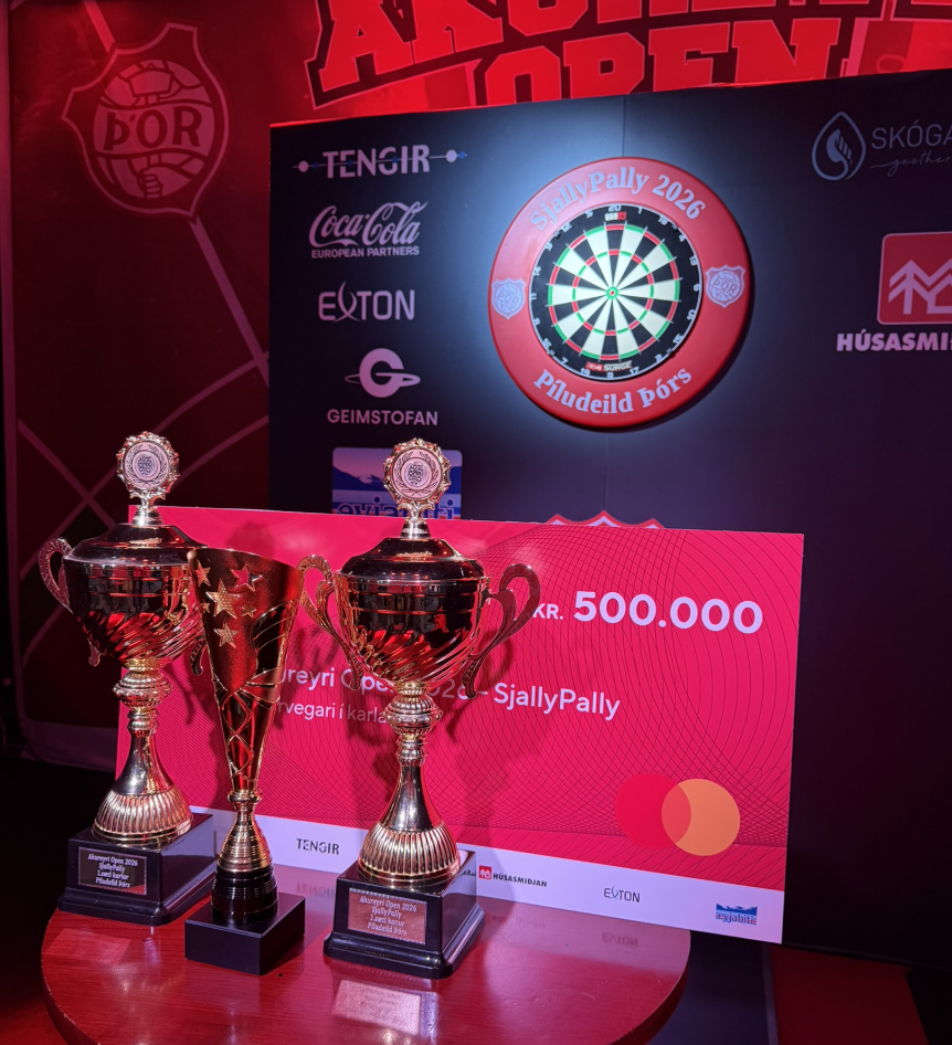 Í dag, laugardag, hefst keppni kl 10:00 þegar leikir í útslætti hefjast. Sjallinn er öllum opinn í dag til að koma og kíkja og fylgjast með. 36 píluspjöld eru í Sjallanum og því nóg að sjá.